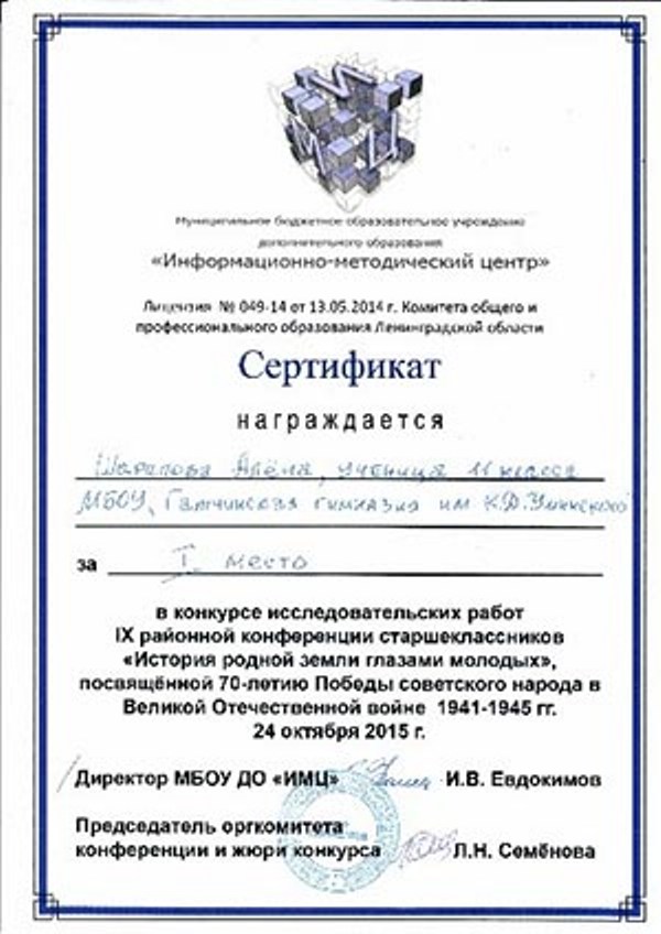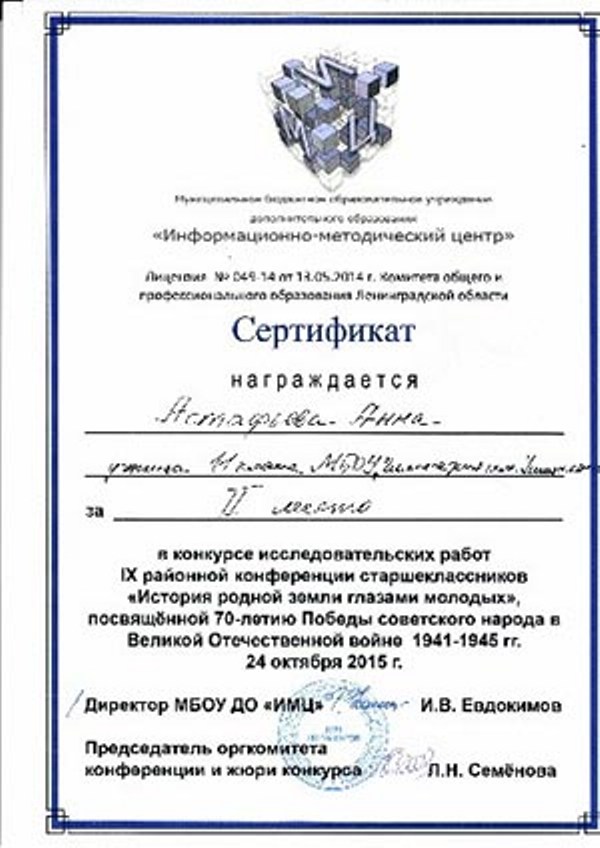 Призер областного этапа Региональной олимпиады школьников Ленинградской области по основам предпринимательства и потребительским знаниям