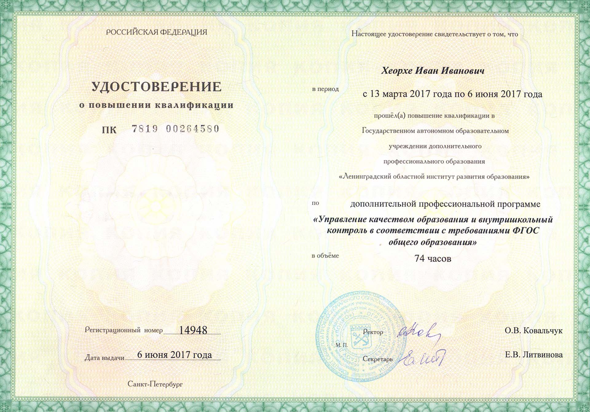Управление качеством образования и внутришкольный контроль в соответствии с требованиями ФГОС общего образования - 74 часа |